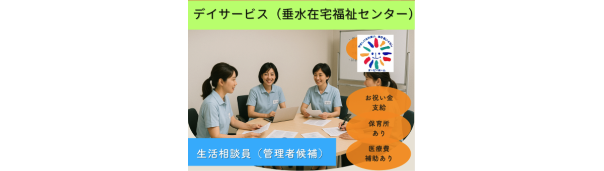 【垂水在宅福祉センター】デイサービスの生活相談員(管理者候補)/10万円の入職お祝い金あり♪(期間限定、規定あり)